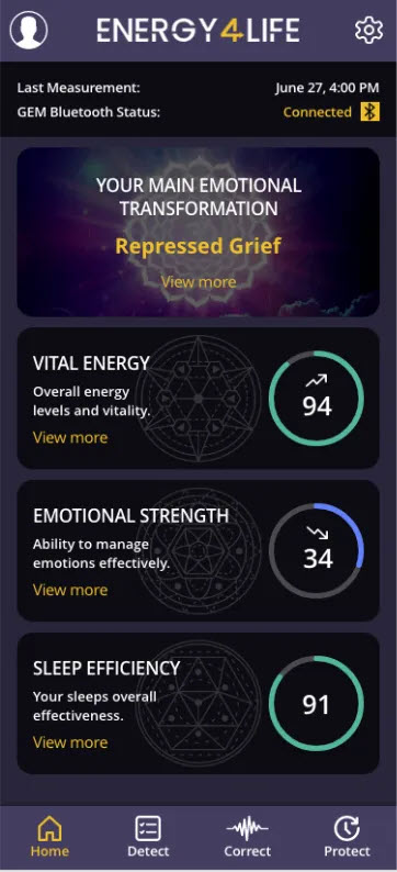 The Energy4Life GEM is a groundbreaking wearable that helps you track your energy and emotional patterns, bringing awareness and balance into your everyday life.